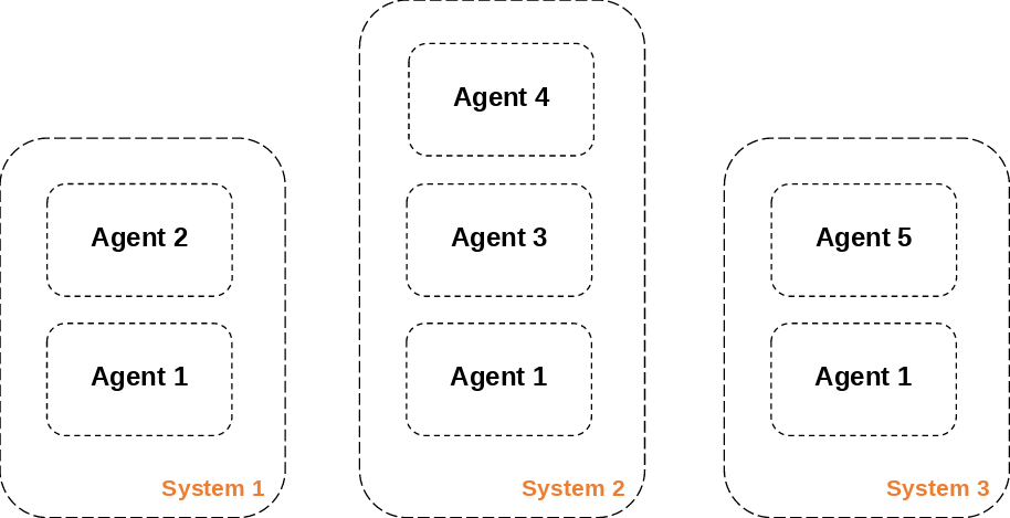 Notice that agent 1 appears in all systems and ends up being the most requested. In this scenario, the A2A protocol allows it to be easily scaled by adding new instances without major difficulties — as shown in the second image.