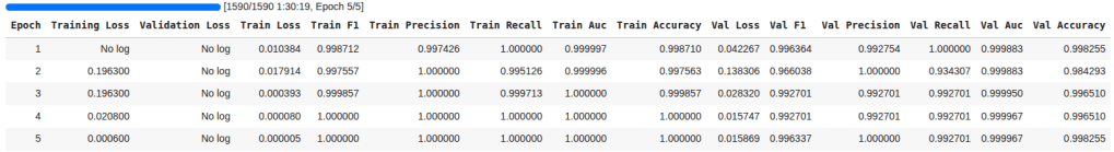 On this test dataset, the model achieved 100% precision and 99% F1-score, which is very close to the results obtained on the validation set and significantly better than the performance of the model without fine-tuning, which reached 60% precision and 74% F1-score.